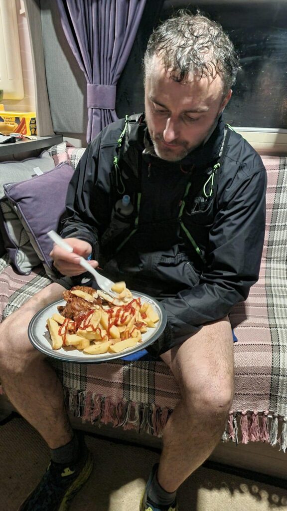 I didn’t take any time off work on the lead up to this challenge as I didn’t want to be sat around all day thinking about it. other races I tend to take at least a day off for checking weather, checking my kit and making any last minute adjustments for the weather and also spend some time looking at the route again. I resided to that fact that a know the route, even if it was clagged out, sea threat or downpours all day/night. I’m 30-45 mins away from my next food stop or change of clothes and I’ll have my support crew around me.
